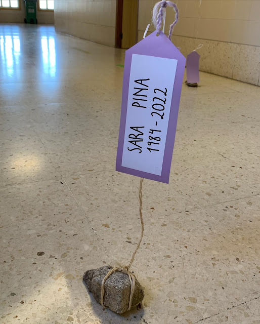 7. "AUSENCIAS": EXPOSICIÓN NO CORREDOR DE ENTRADA DO CENTRO. A autoría desta exposición vén da man do alumnado de Artes de 1º de Bacharelato e foi organizado pola profesora Blanca, do Dpto. de Debuxo.